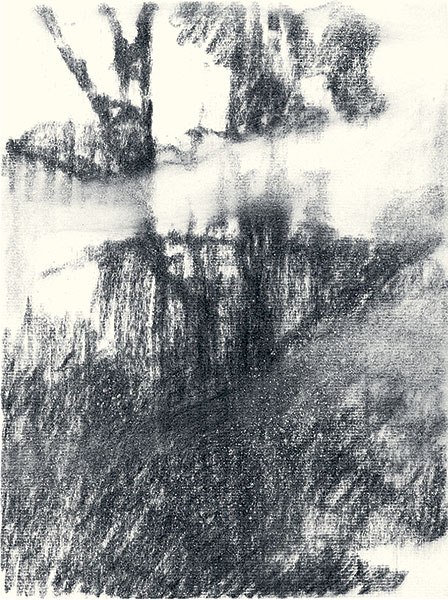 Réduire volontairement l’avidité de mon regard m’a fait découvrir combien la vue était proche du toucher. La technique au fusain est ici déterminante, comme l’est également l’aspect tactile de l’arbre : de même que toutes les formes de nature, il n’est conçu ni par nous ni pour nous. Mais il m’incite à étendre la main. Il est grand, il est transparent, il protège quelque chose d’invisible. « La ‹ nature ›, c’est-à-dire la Donnée. Et c’est tout. Tout ce qui est initial. Tout commencement », a dit Paul Valéry. Voilà pourquoi un arbre est un complice idéal. En maintenant mon regard à ce « commencement », dans la présence des choses, il permet qu’une porte s’ouvre à moi.