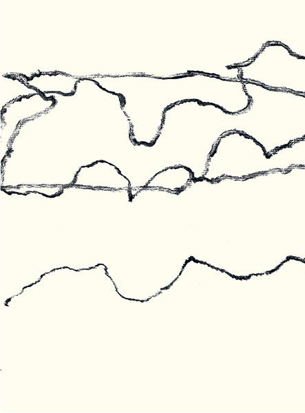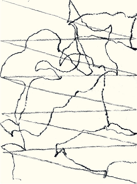 Je me rassure tout autant dans le monde quand je dessine. Mais le geste de la main dessinante me facilite d’aller au-delà de ce qui m’est bien connu. Quand je sens l’inédit ou l’imprévu se former dans la relation avec mon motif, j’ai l’impression de m’approcher de quelque chose qu’on peut appeler un contact. Ce « contact » peut aussi induire un état d’immobilité tel que j’ai envie de continuer le dessin les yeux fermés.